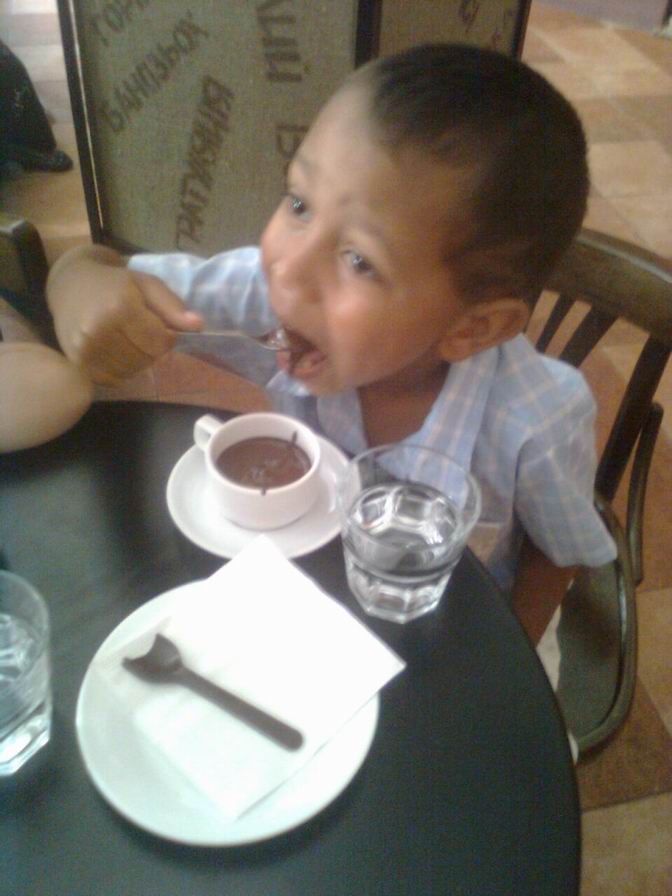 Потом нямают горячий шоколад (очеееень вкусный!), можно заедать его шоколадной ложкой